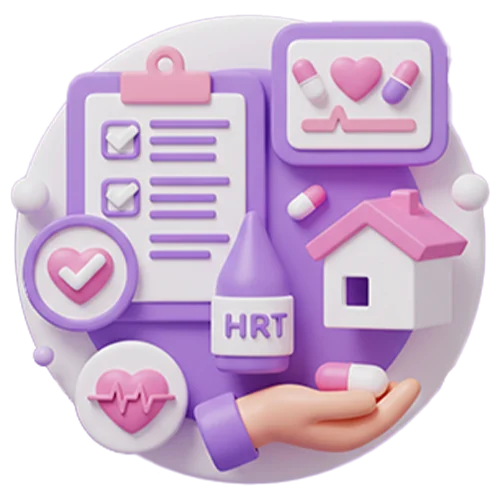 Your provider creates a tailored HRT plan using bioidentical hormones, with treatment delivered in-clinic or to your home — supported by expert guidance and ongoing care.
